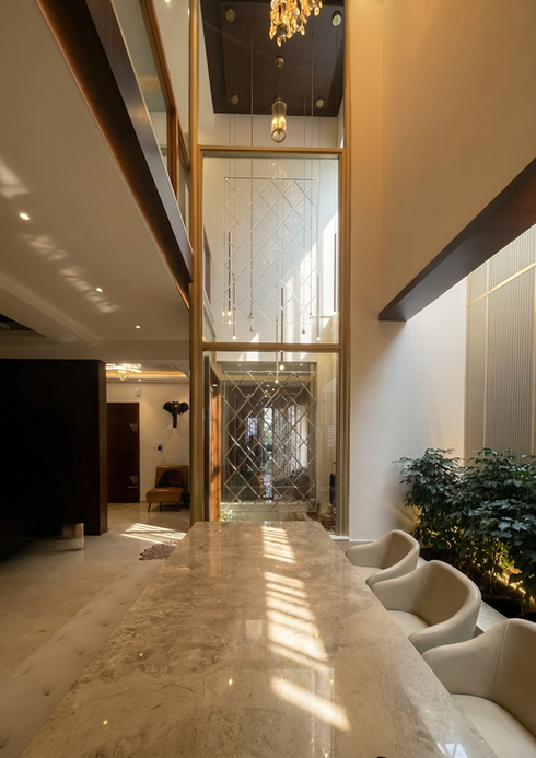 This modern two storeyed home designed for a doctor, boasts contemporary sensibilities and chic interiors, showcasing our commitment to innovative and elegant design solutions for our clients.